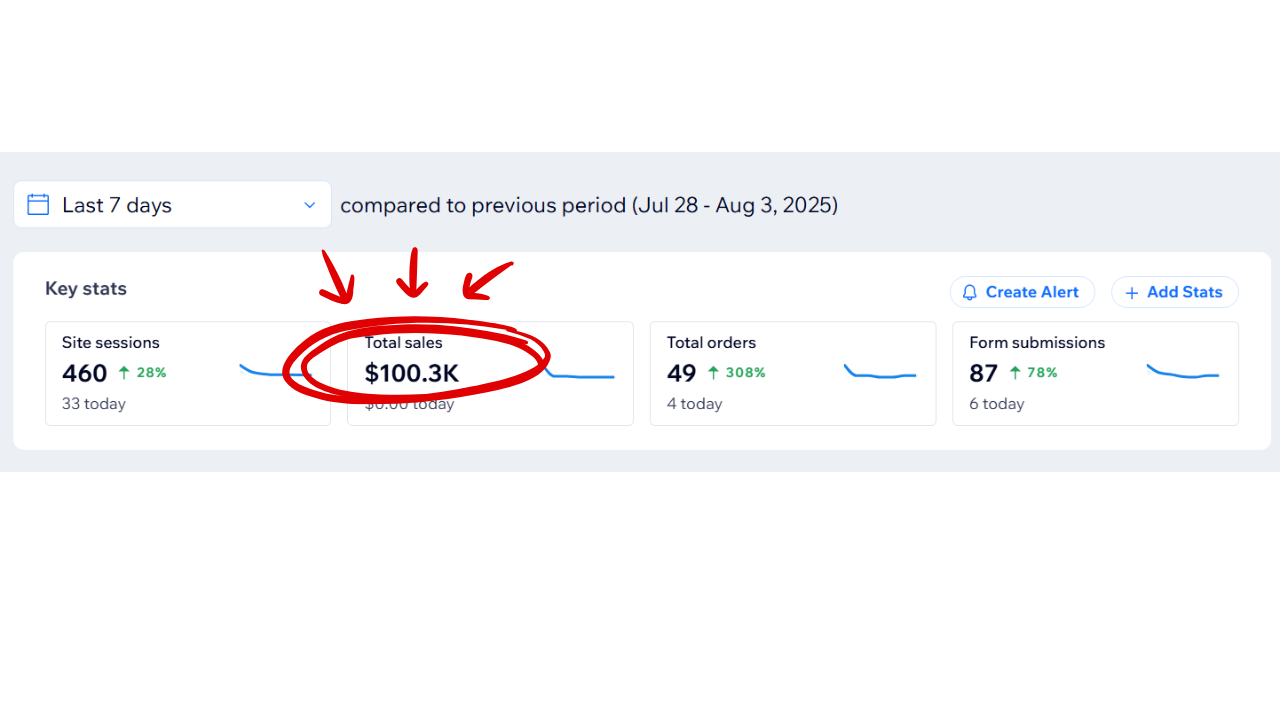 $100.3K in weekly sales with 49 orders and 87 form submissions.